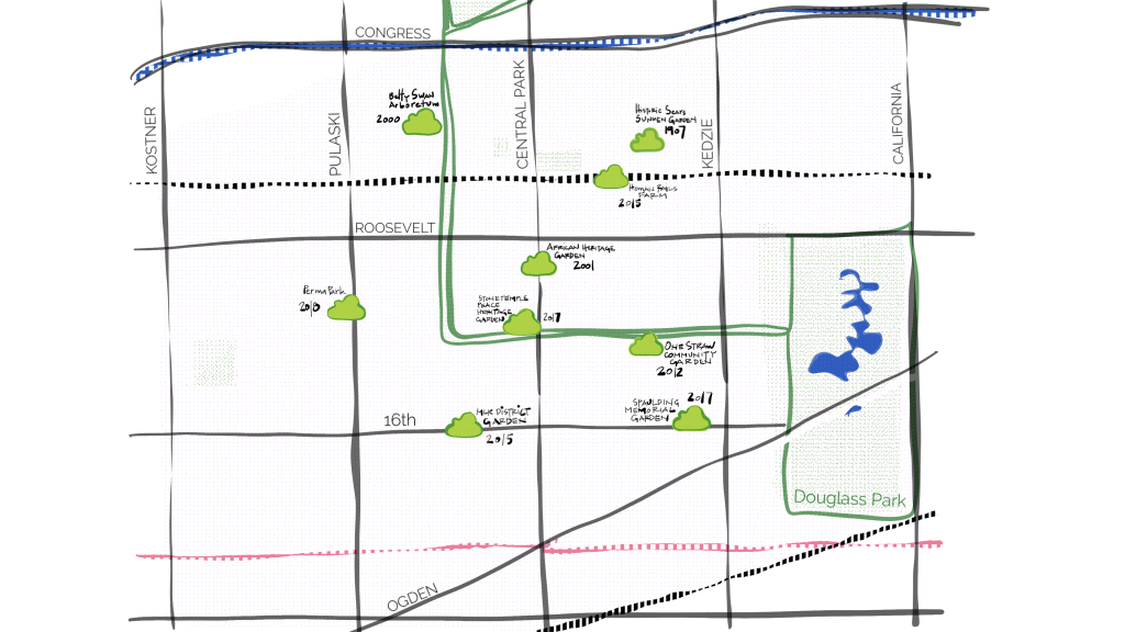 One Straw Community Garden, 3341 W. Douglas Blvd., Chicago, IL 60623. Opened in 2012.